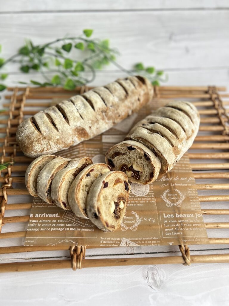 ライ麦サワー種粉末を使用したライ麦入りパンです。いちじくとカシューナッツを入れて。ライ麦特有のほんのり酸味のある生地に、甘さと旨みのあるドライフルーツ、ナッ...